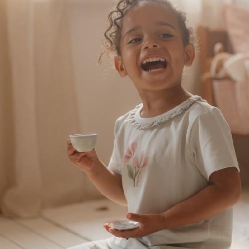 Shall we have tea? Your child will enjoy hours of role playing with this cute little tin tea set. This Fairy Garden tea set stimulates children's imagination and encourages fine motor skills.