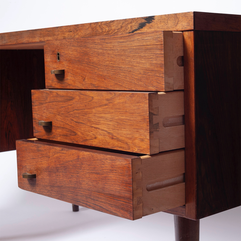 - / 1960s Danish Rosewood Desk With Brass Handles