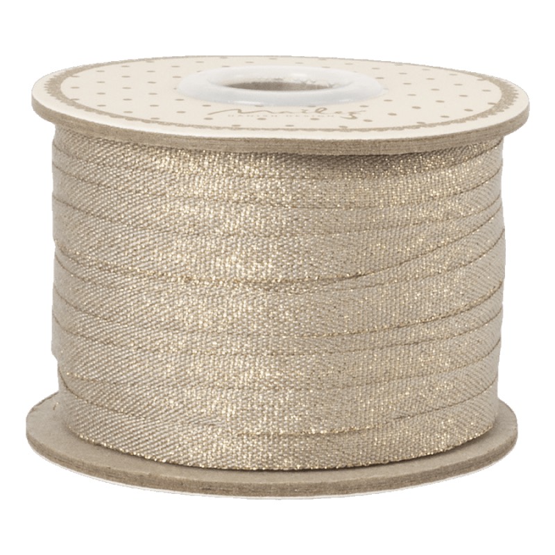 - / 25m Roll Of Ribbon In Stone/Gold By Maileg