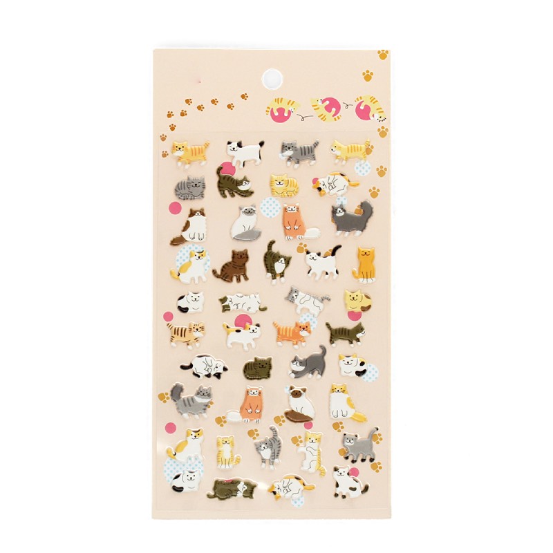 Collection of 3D puffy stickers with cute cat theme on a single sheet. Small, squishy and tactile, these stickers can be used to add colour and fun to greetings cards, gift wrapping, craft projects, scrapbooks and more.