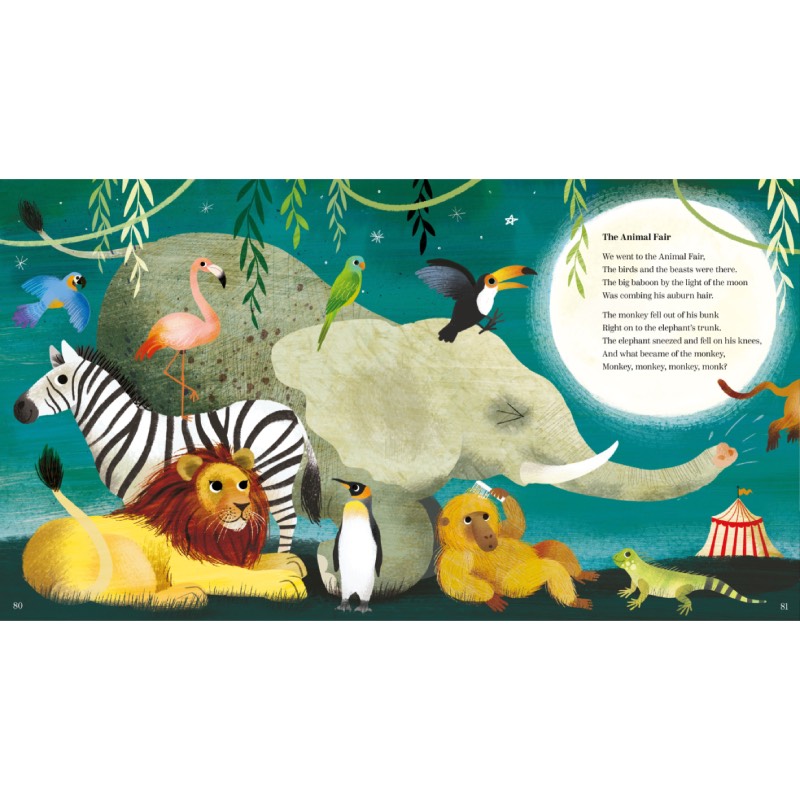In this captivating collection, you’ll meet favourite friends Humpty Dumpty, the Owl and the Pussy-cat and Little Miss Muffet, as well as mermaids, elves and a whole host of animals at a magical fair.
