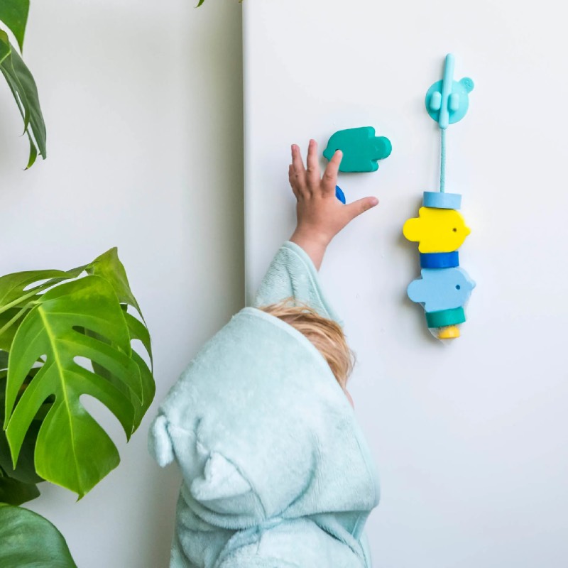 Use the suction cup to hang your kid’s creation on your bathroom wall and give the room a kids friendly touch. Different shapes and colours = Endless variations
