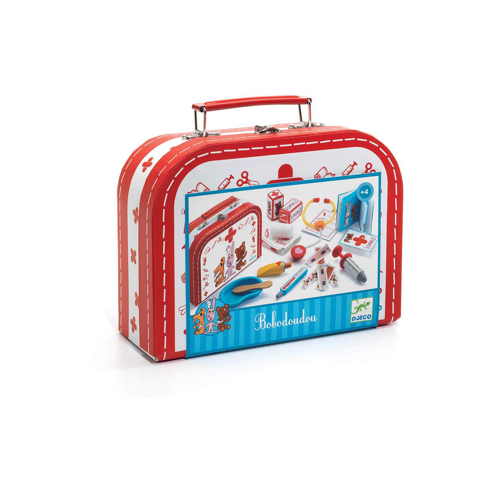 The creative set includes bandages, stethoscope, notebook, thermometer and more and is perfect for stuffed animals and soft toys.