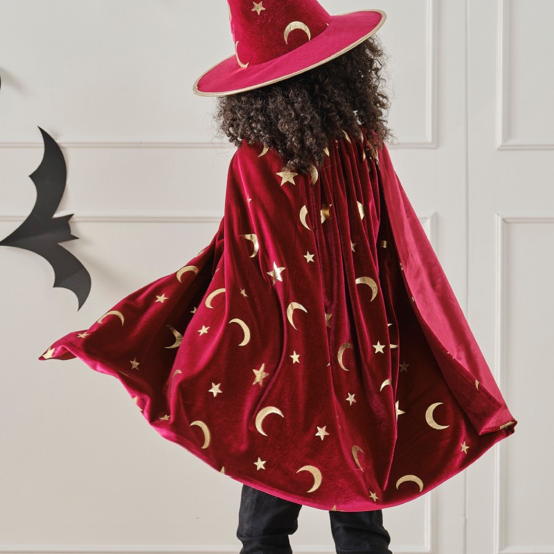 This luxurious burgandy magician costume is a welcome addition to all dress up boxes.