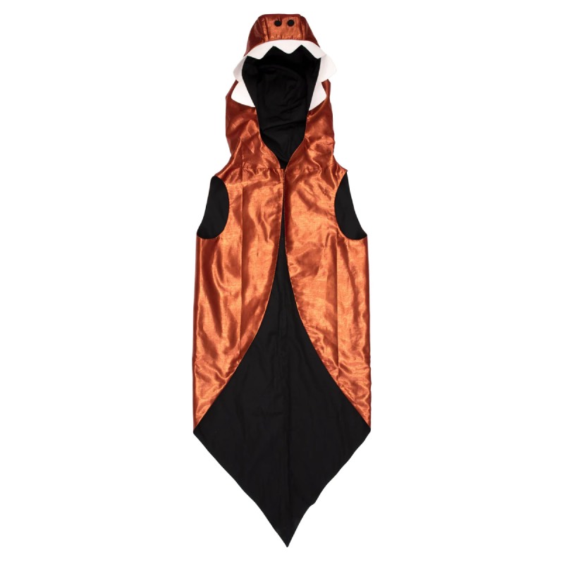 Little dino lovers will adore this Dinosaur Dress Up set! It makes a fantastic gift and and an excellent addition to a dress up box. The hooded jacket is crafted from red and copper lame. It has felt facial details and spikes sewn on the back. Perfect for lots of roaring good fun!