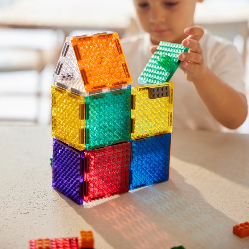 Bright, bold, and brilliantly creative, this 16-piece Cleverclixx Brick Tiles Set offers open-ended fun for curious minds. With its vibrant magnetic tiles and brick-compatible surfaces, children can build, imagine, and explore through hands-on play.
