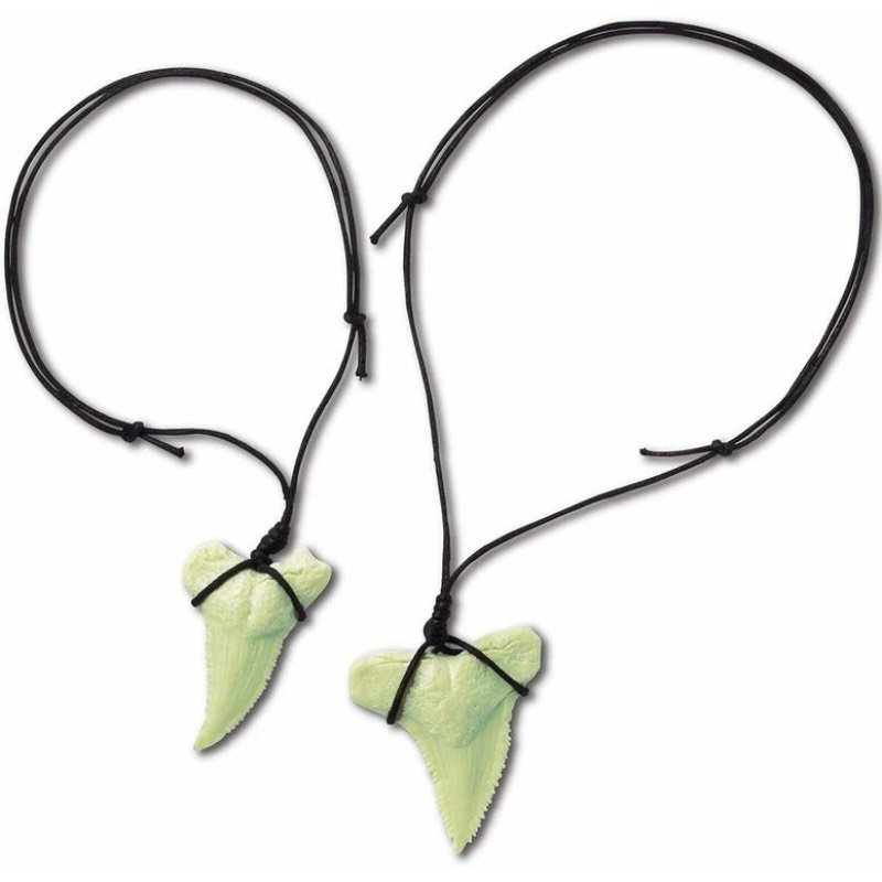 This kit contains two glow-in-the-dark shark teeth (buried in the plaster block), one specially designed digging tool, one fabric cord and detailed instructions for making knots for necklaces and how to make it glow.