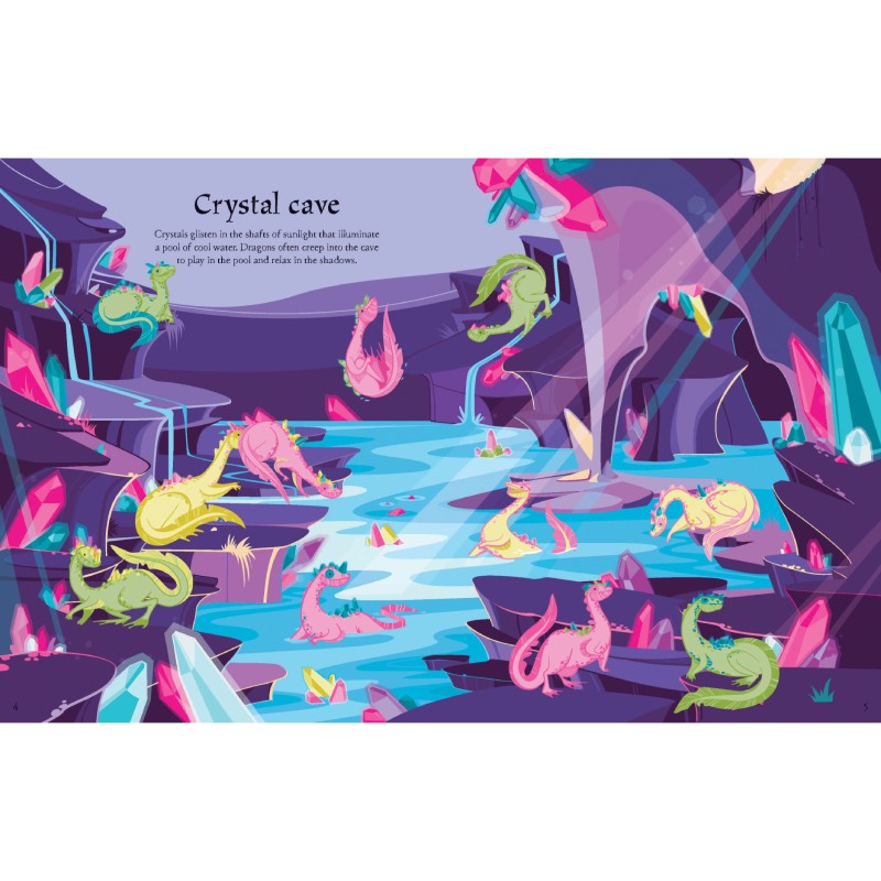 Enter a magical world where dragons fly by moonlight, guard treasure, sleep in a castle and live in a crystal cave. With hundreds of stickers of dragons, treasure and other creatures, including a double page of extra-special sparkly stickers to decorate the pages.