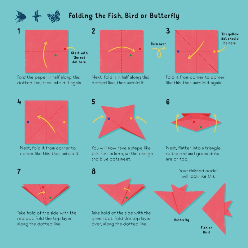 From birds and butterflies to fish, dinosaurs and whales, you can fold yourself a colourful menagerie of 61 origami creatures.