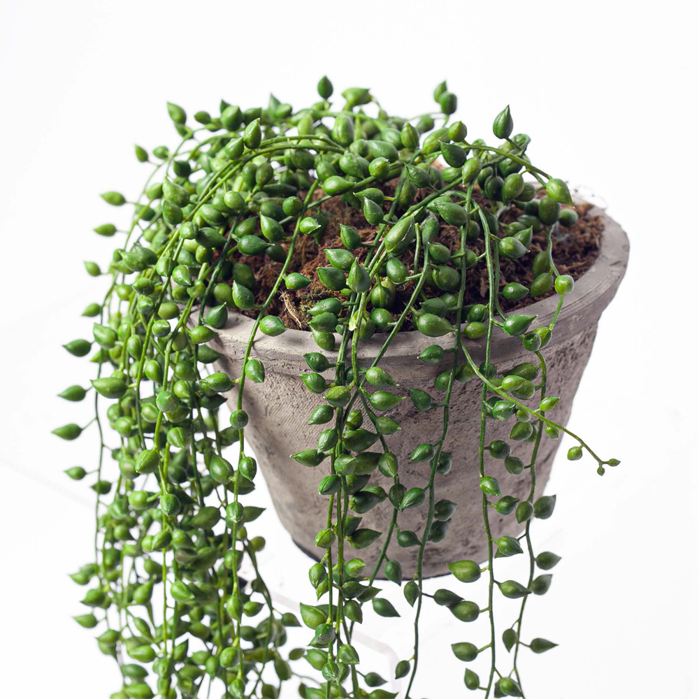 - / Faux String of Pearl Artificial Plant in Cement Pot