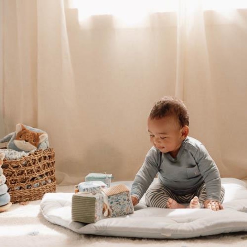 Plus, it stimulates hand-eye coordination. The cheery set consists of four multi-sensory blocks, each one defined by soft colours and decorated with a unique number.