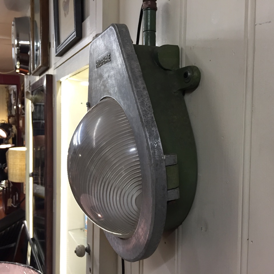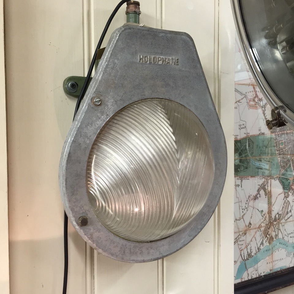 Holophane Galvanized Industrial Bulkhead Light With Ripple Glass.