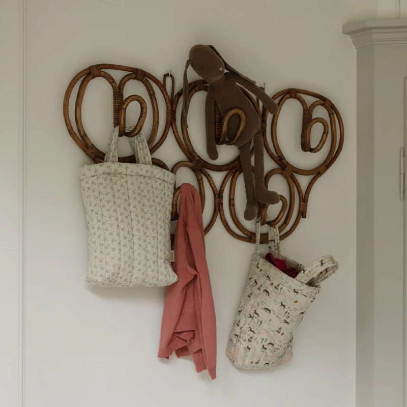Beautiful quilted tote bag for the smaller kids. Perfect for bringing the lunchbox to the kindergarten or maybe some favourite toys. The bag has 2 handles and is without closure.