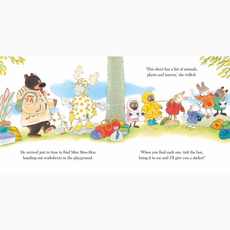 Douglas is very excited - he's off on a nature walk with all his friends from Little School. Miss Moo-Hoo has given everyone a worksheet with a list of interesting things to find, such as flowers, twigs, berries and bugs.