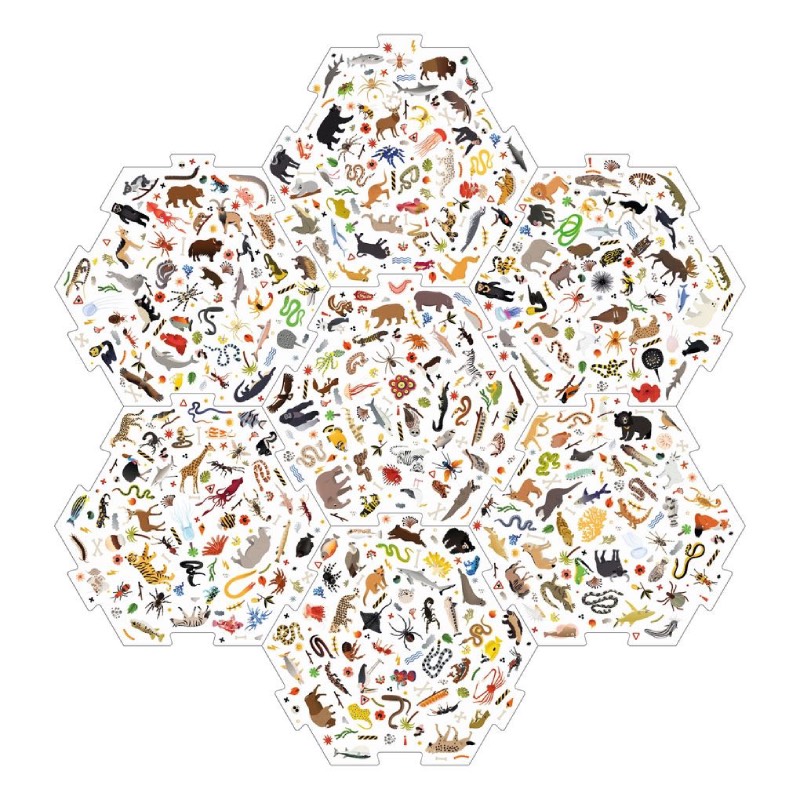 Pick a counter from the box and be the first to spot that animal. The hexagonal double-sided board features charming illustrations by Caroline Selmes.