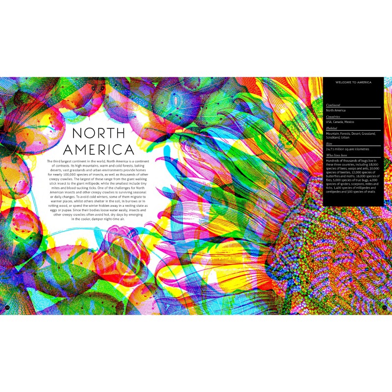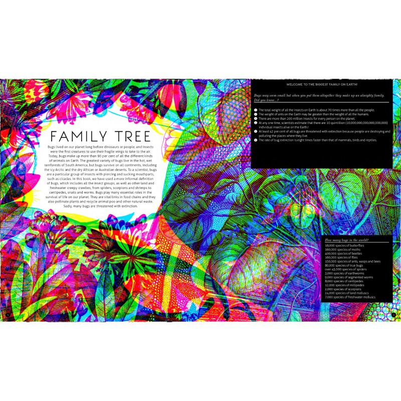 The green lens reveals habitats across time and space; the red lens brings insects to life including beetles, butterflies, moths, flies and wasps; the blue lens uncovers other creepy-crawlies including worms, snails and spiders.