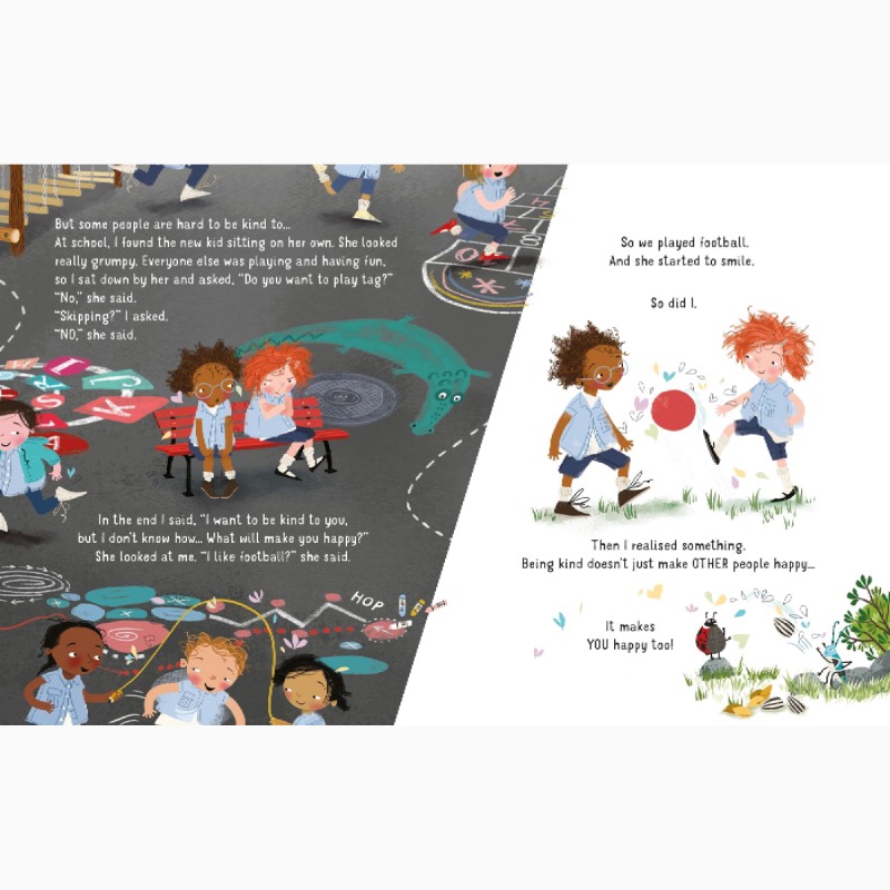To be truly kind, it turns out, you have to try to look at things from other people's points of view. Delicate laser cut holes accumulate as the pages are turned to show how kindness feels and how it can spread from person to person.