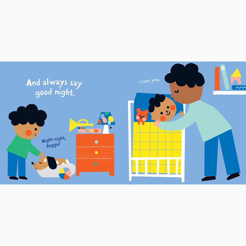 Let's be kind--and share our toys. Let's be kind--and help around the house. Let's be kind--and always say "Good night."