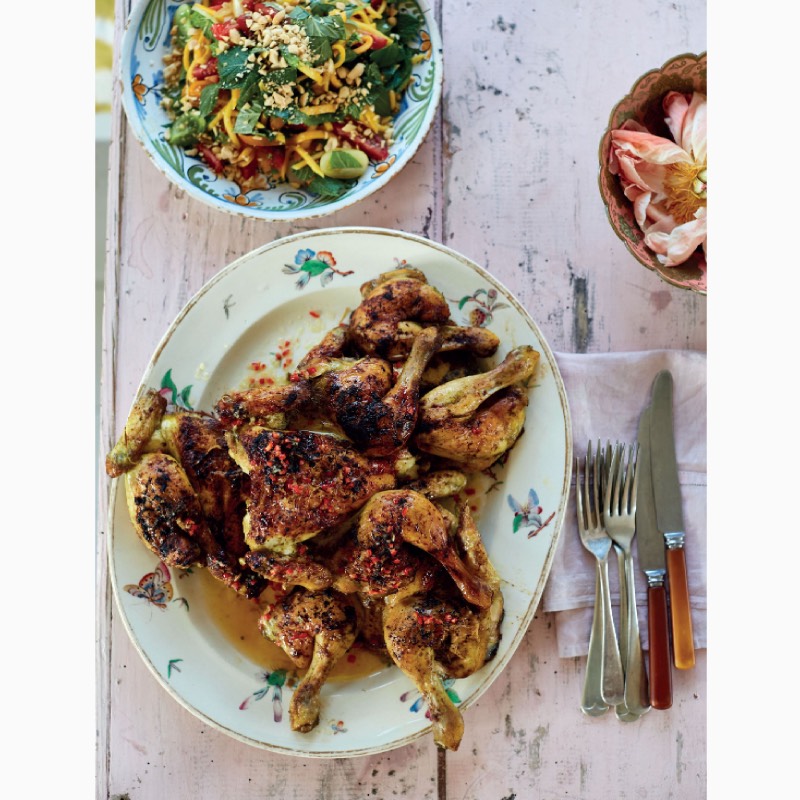 Ravinder Bhogal was born in Kenya to Indian parents, and moved to London as a child. Her recipes are lawless concoctions which cross continents and draw on multiple traditions: Cauliflower popcorn with black vinegar dipping sauce; Spicy aubergine salad with peanuts; Herbs and jaggery fox nuts; Skate with lime pickle brown butter; Tempura samphire and nori; Lamb and aubergine fatteh.