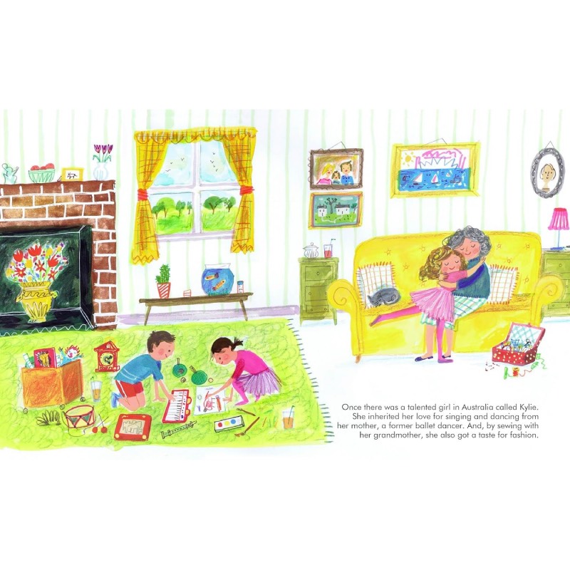 Little Kylie grew up with her parents and her younger sister, Dannii, in Melbourne, Australia. She loved singing, dancing and spinning around in her room, but she felt shy in front of other people.