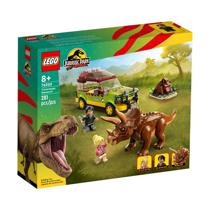 Kids who are into dinosaurs and cool cars will love this collectible LEGO® Jurassic World Triceratops Research (76959) playset. An awesome gift toy for ages 8 and up, it features an authentically detailed Jurassic Park Ford Explorer with an onboard navigation system element to track dinosaurs and space for the 2 minifigures – Dr. Ellie Sattler and Ian Malcolm.