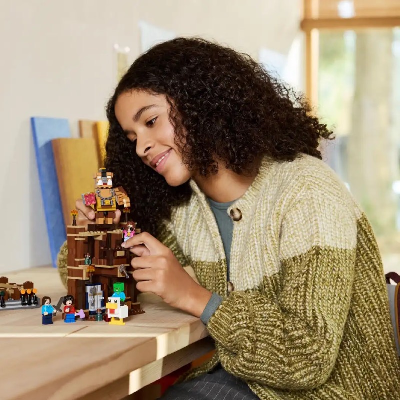 The LEGO® Minecraft building set features toy figures from the film – Steve, Garrett, Henry, a baby zombie, a chicken jockey and a posable great hog – plus weapons and potions that kids can use as they recreate battle scenes and explore adventures of their own.