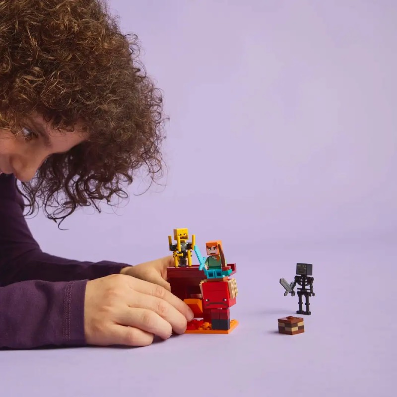 The Nether Lava Battle (21266) is a small LEGO® Minecraft® set that provides a build-and-play version of the popular video game. This versatile Minecraft activity set features popular gaming figures, fun features and endless action, making it the perfect treat for kids aged 6 and up.