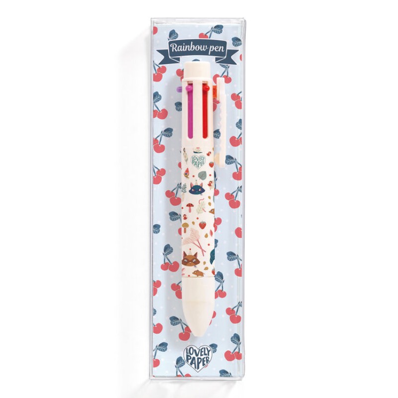 Lucille rainbow pen with 6 colours – fun, playful and perfect for adding a splash of creativity to any project. This multi-coloured pen features a sweet woodland design with foxes, acorns and berries, making it a charming addition to pencil cases or stationery sets.