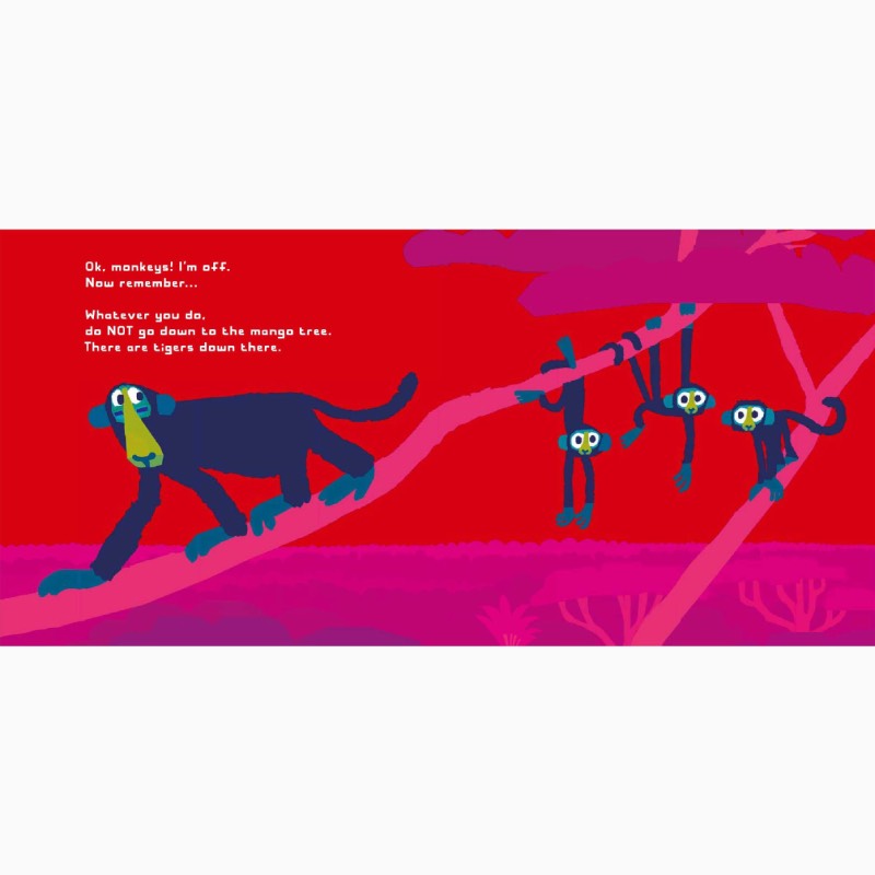 Three little monkeys, and their big monkey, are sat high up on their branch in the forest canopy. “Ok, monkeys! I’m off," says the big monkey. “Now remember. Whatever you do, do not go down to the mango tree. There are tigers down there.” Mmm … mangos! think the little monkeys. They love mangos. Hmm ... maybe … maybe they could just look at the mangos? That’d be ok, right?