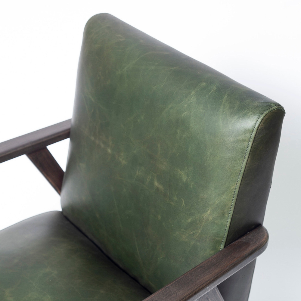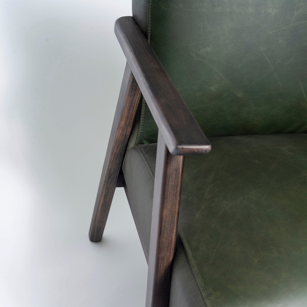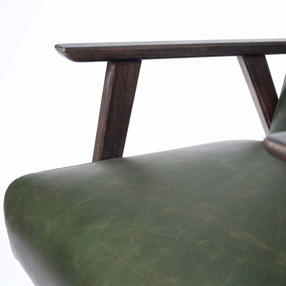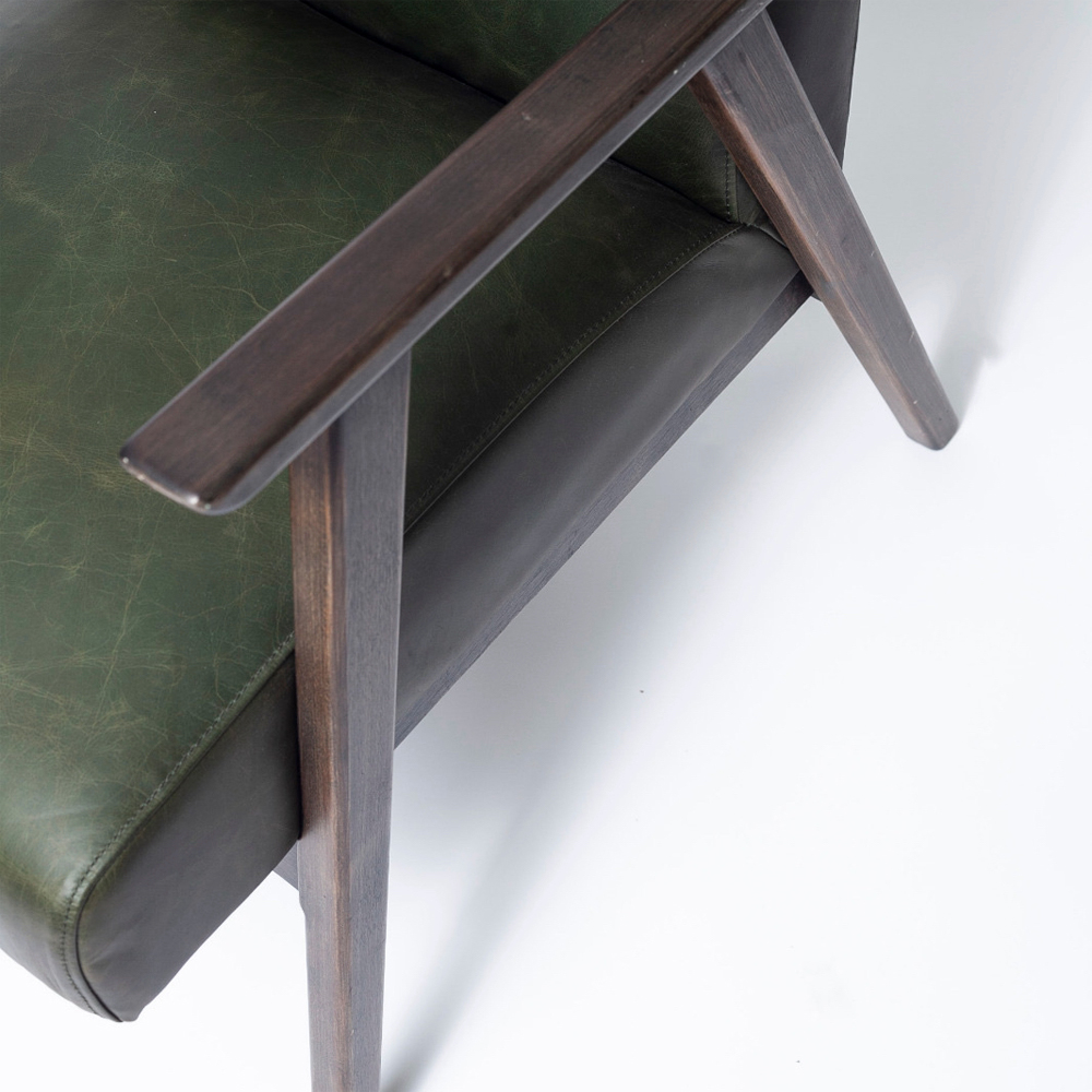 Classic Mid-Century inspired arm chair finished in a beautiful green leather.