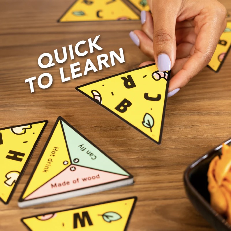 A food that starts with P? A bald celebrity that begins with B? Simply shout out an answer that connects the category with the opposite letter. Collect 6 pizza slices to win.