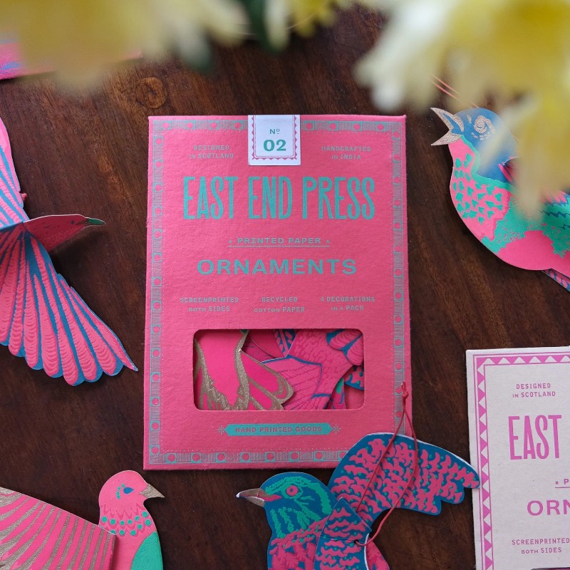 With four dazing, jewel coloured birds, this set of paper decorations is inspired by colourful festive ornaments of years past.