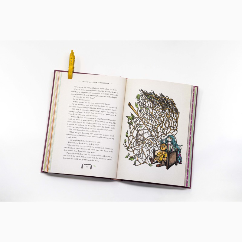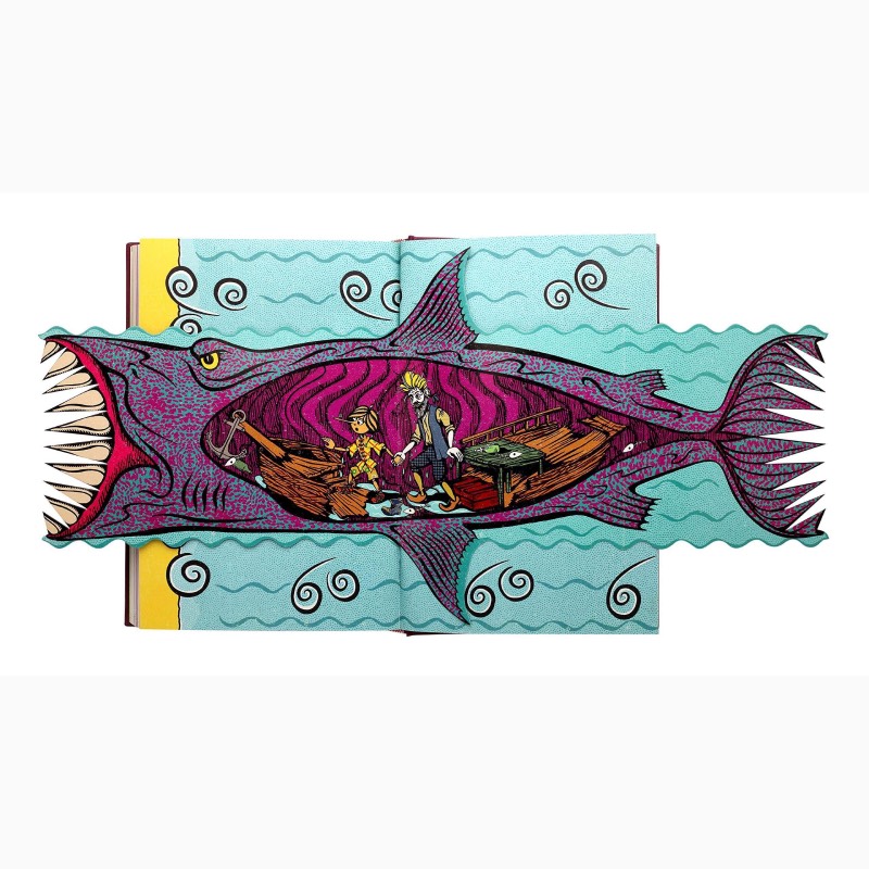 This edition of Carlo Collodi's classic fairy-tale includes specially commissioned artwork from the studio Minalima, and interactive features including a Pinocchio puppet with clothing, additional finger puppets, a small theatre for a puppet show, a court with Pinocchio behind sliding bars, and a fold out shark revealing Pinocchio and Geppetto inside.
