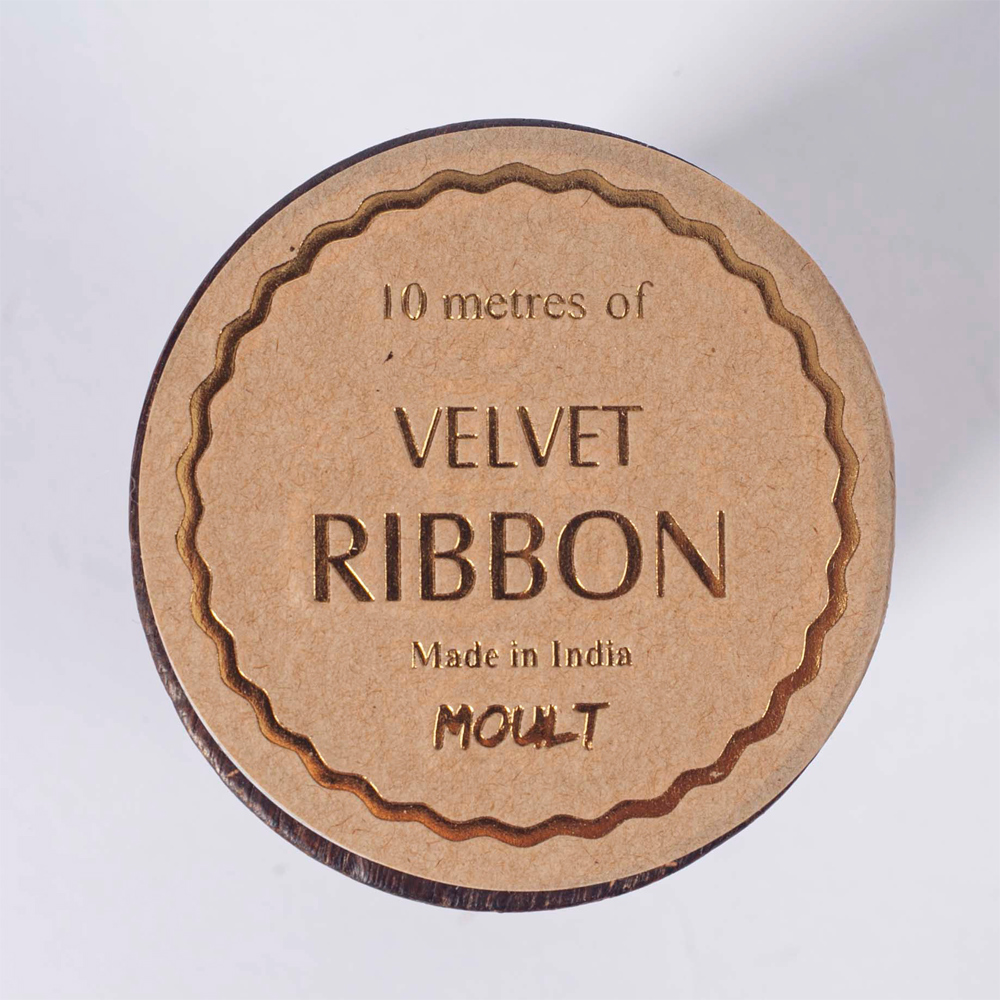 Reel Of Velvet Ribbon On Wooden Spool In Olive Green 10M