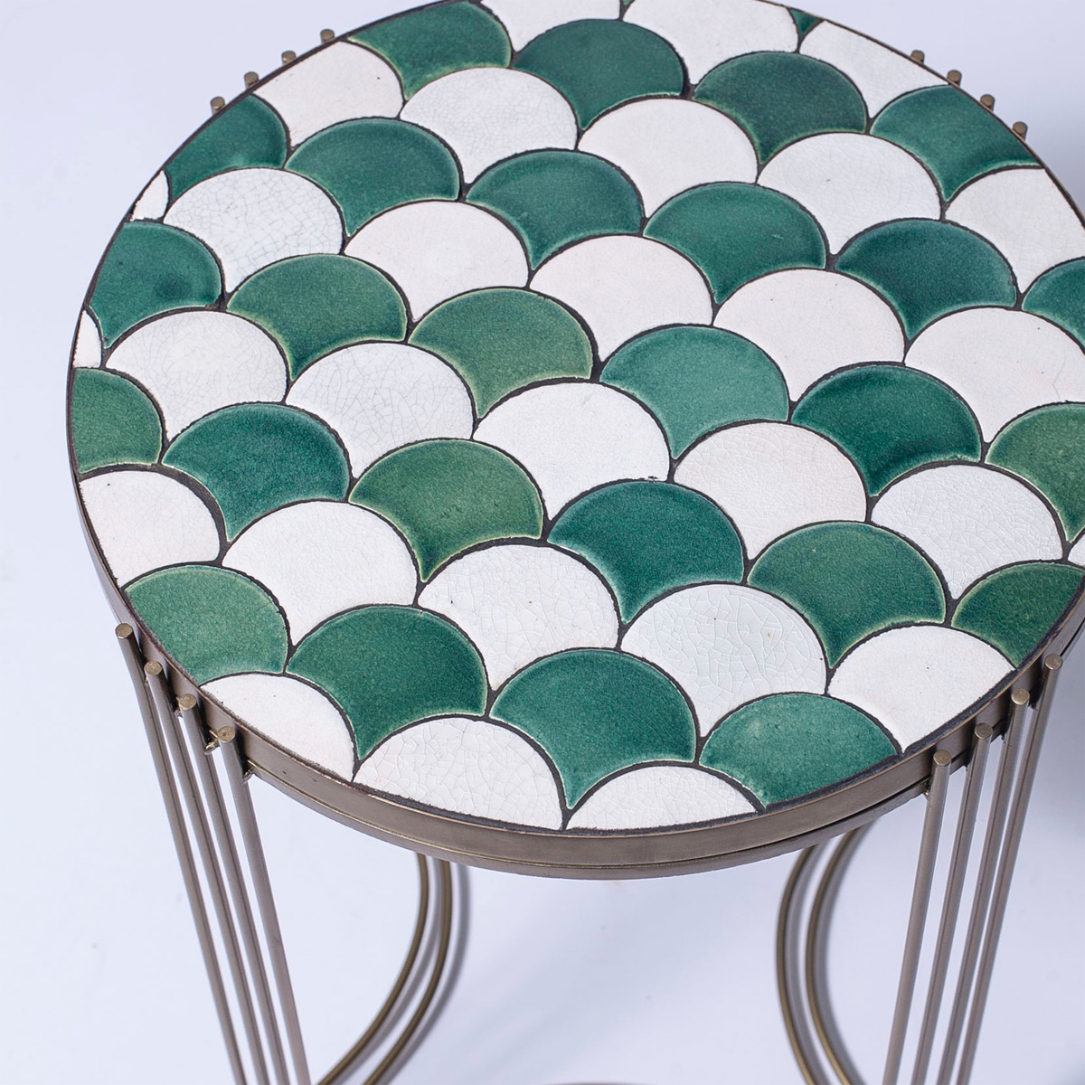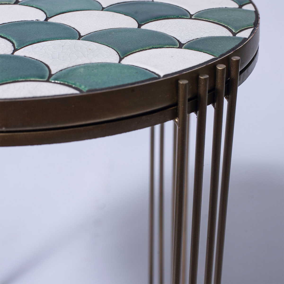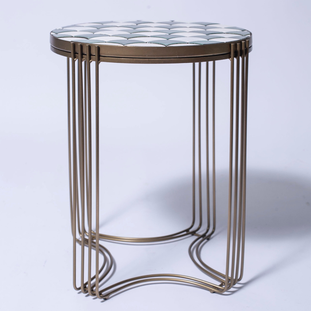 Side Table With Fish Scale Tiles & Brass Frame H:50cm